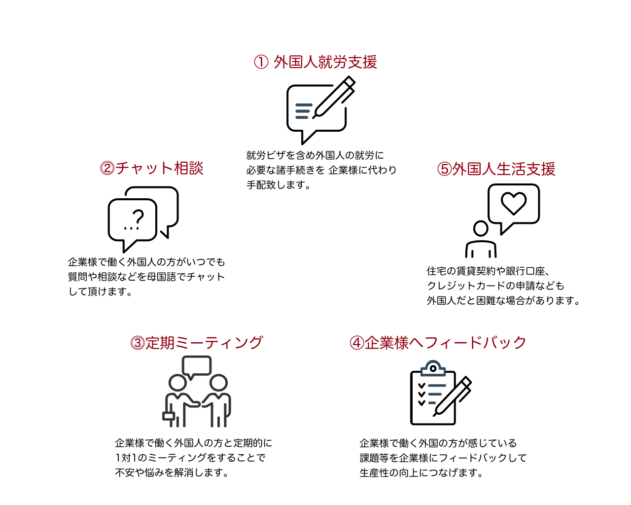 また、日本人なら当たり前でも外国人にとっては勝手が違う部分を実体験としてわかっているため、アドバイスが的確で、採用企業さまと就労人材双方から厚い信頼を頂戴しております。